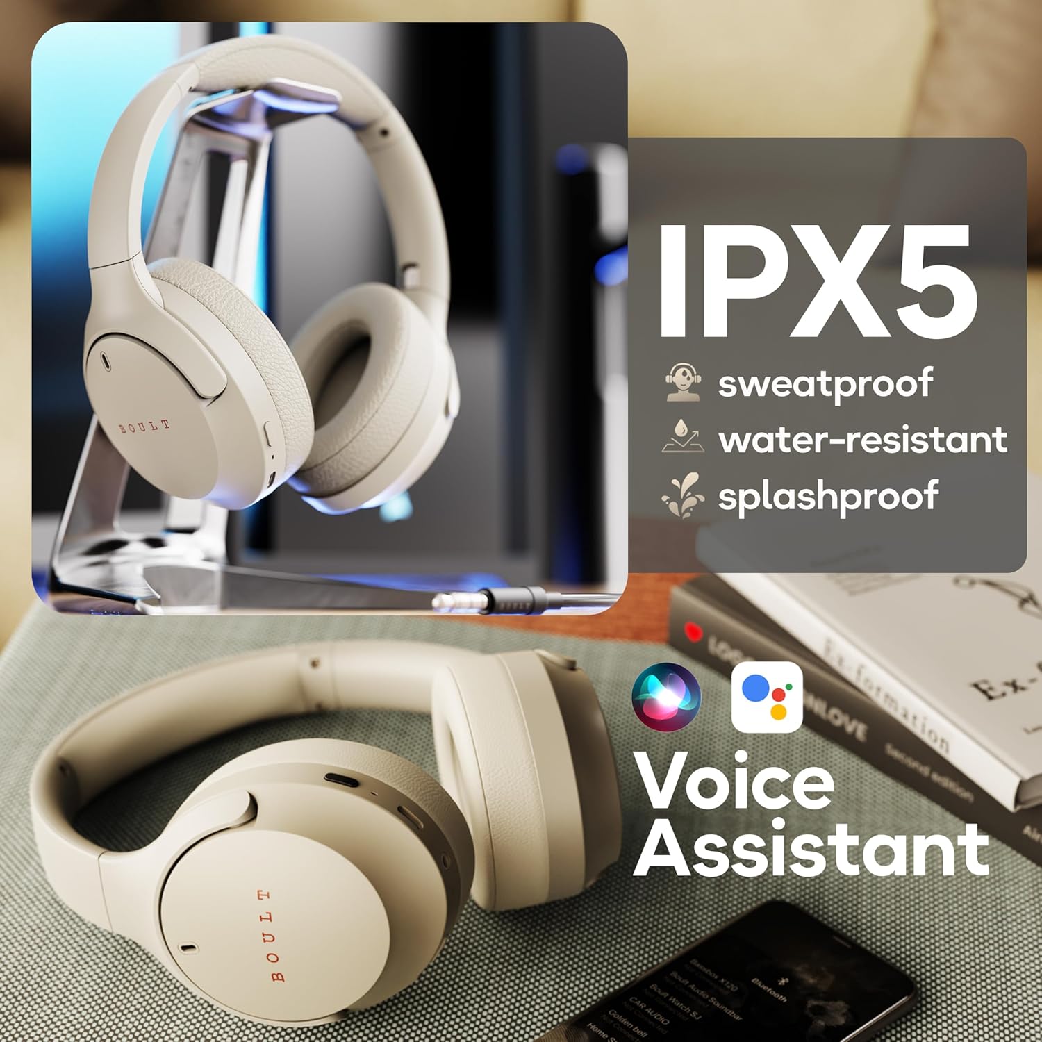 Q Over Ear Bluetooth Headphones with 70H Playtime, 40mm Bass Drivers, Zenâ„¢ ENC Mic, Type-C Fast Charging, 4 EQ Modes, Bluetooth 5.4, AUX Option, Easy Control, IPX5 headphones wireless with mic (Beige)